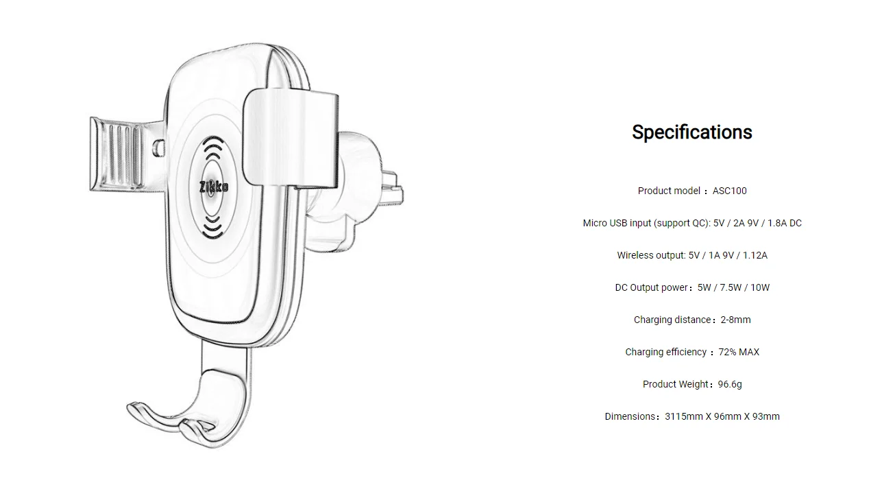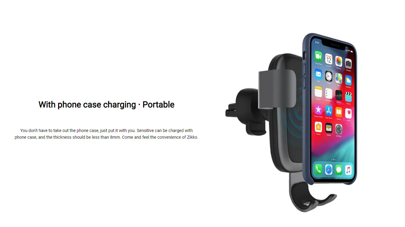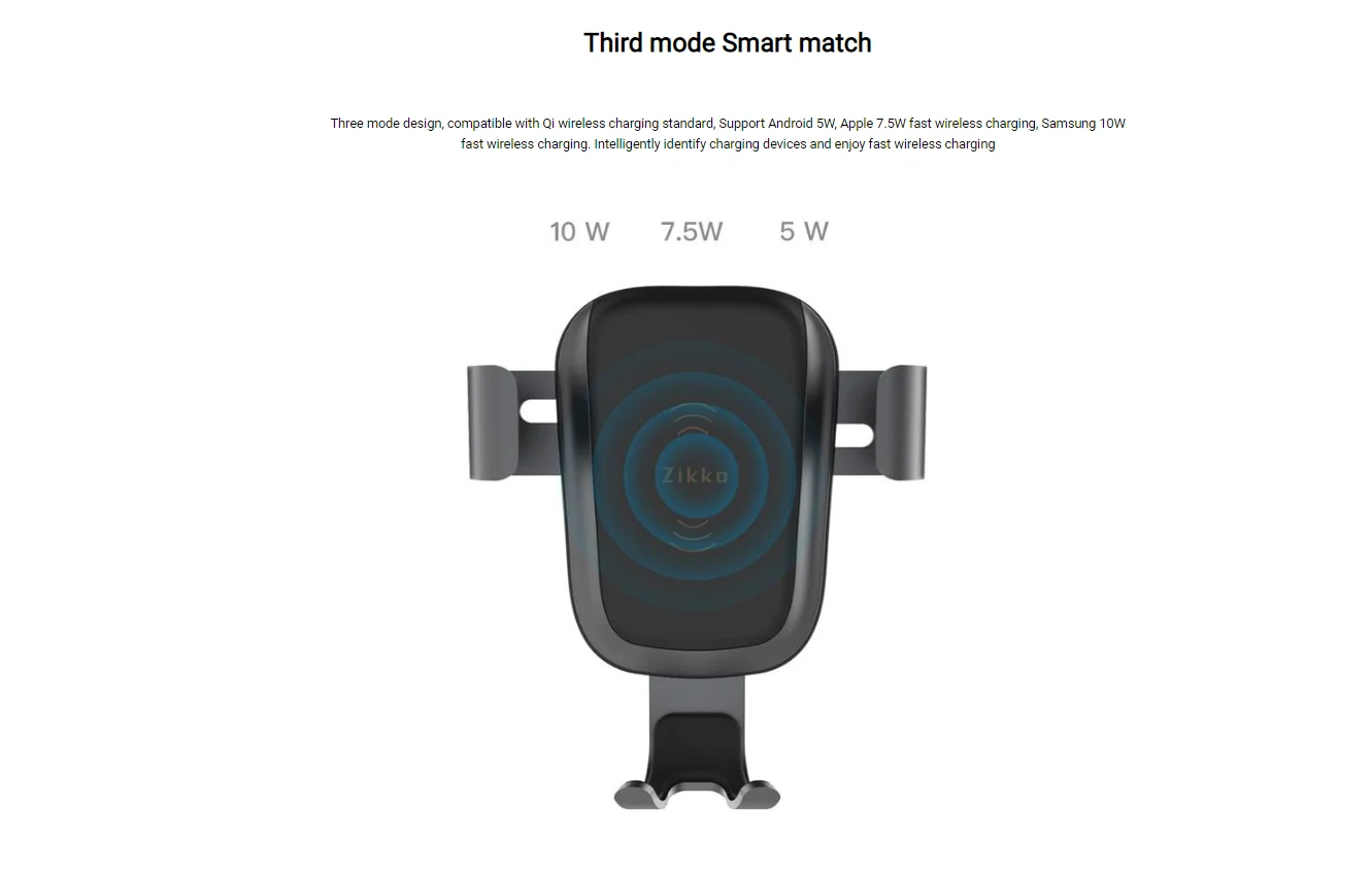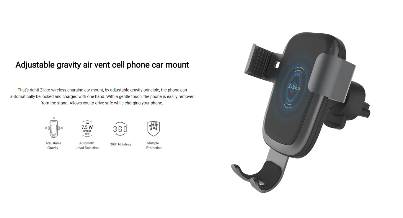 That's right! Zikko wireless charging car mount, by adjustable gravity principle, the phone can automatically be locked and charged with one hand. With a gentle touch, the phone is easily removed from the stand. Allows you to drive safe while charging your phone. ntly Asked Question