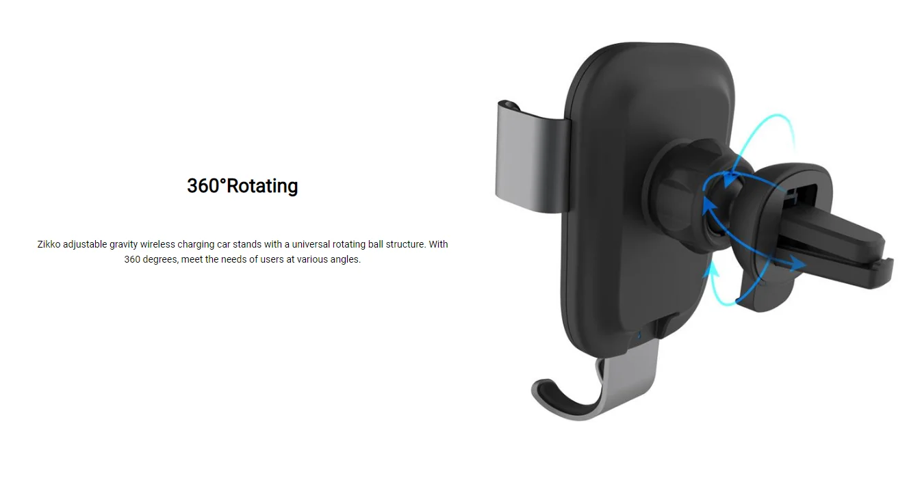 Zikko adjustable gravity wireless charging car stands with a universal rotating ball structure. With 360 degrees, meet the needs of users at various angles.
