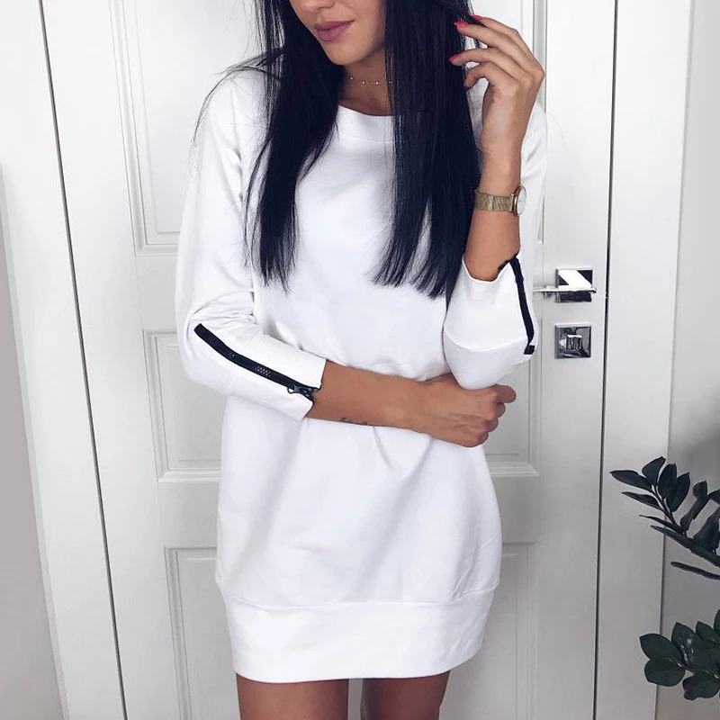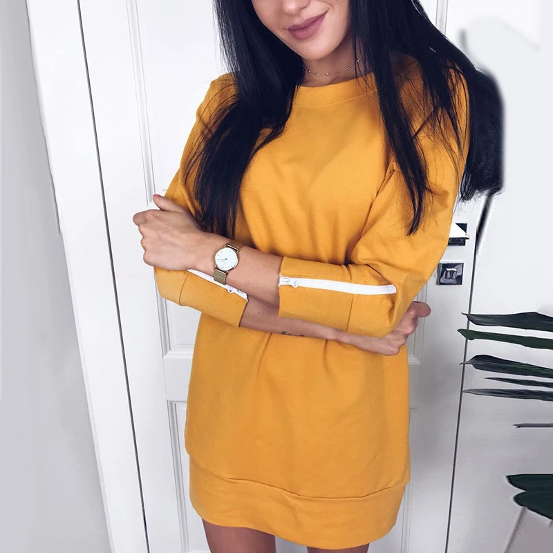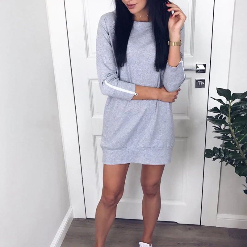 * Описание товара: женское сексуальное мини-платье с круглым вырезом и длинными рукавами, Пляжное летнее свободное Повседневное платье