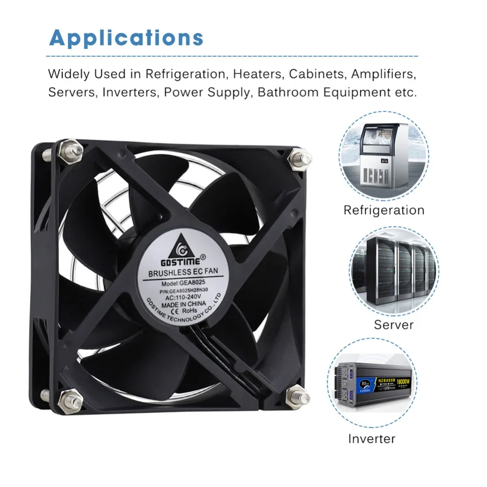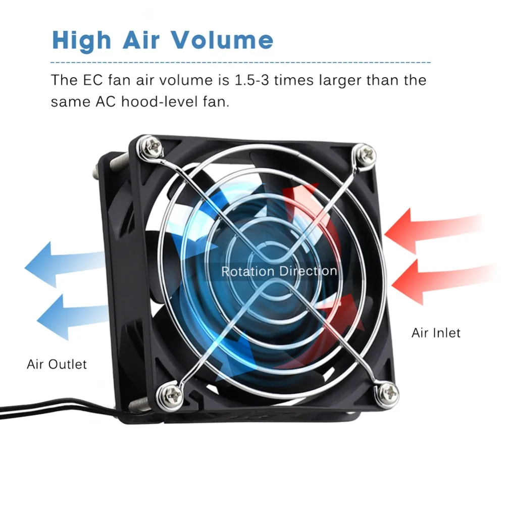 AC 110V 120V 220V 240V 8CM 8025 80x80x25mm 80mm Brushless EC Fan With US Plug