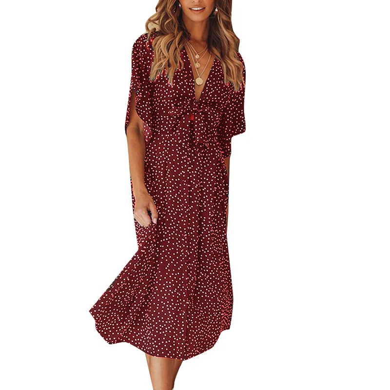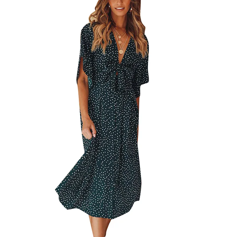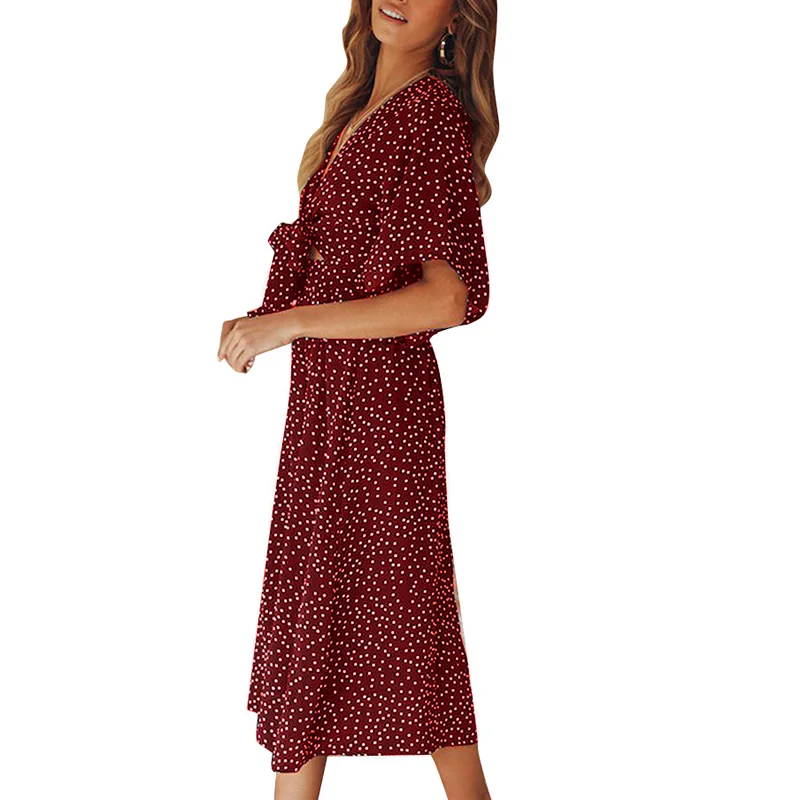 * Описание товара: женское сексуальное мини-платье в горошек с v-образным вырезом и коротким рукавом