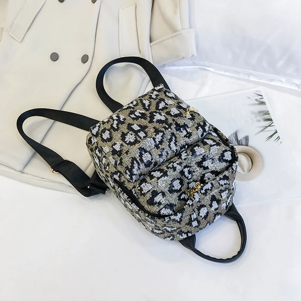 Женская леопардовая школьная сумка с блестками для девочек, рюкзак, дорожная сумка на плечо