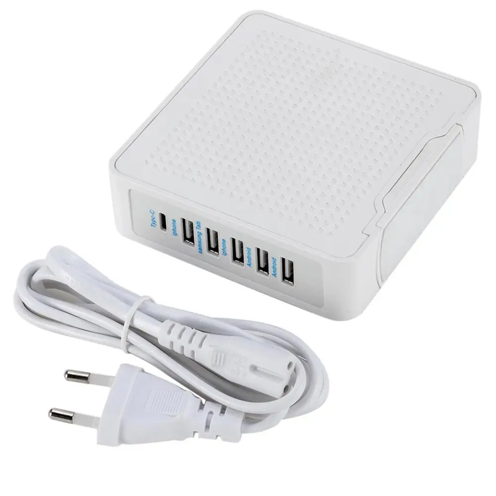 Посылка включает в себя: 1 usb-зарядное устройство с 6 портами