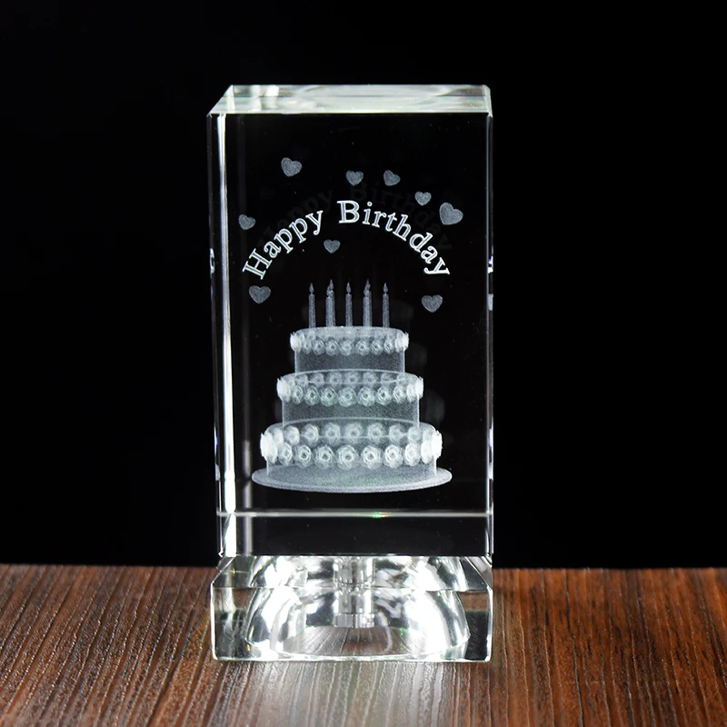 Feature:Very beautiful cake 3D laser inisde the pure clear crystal