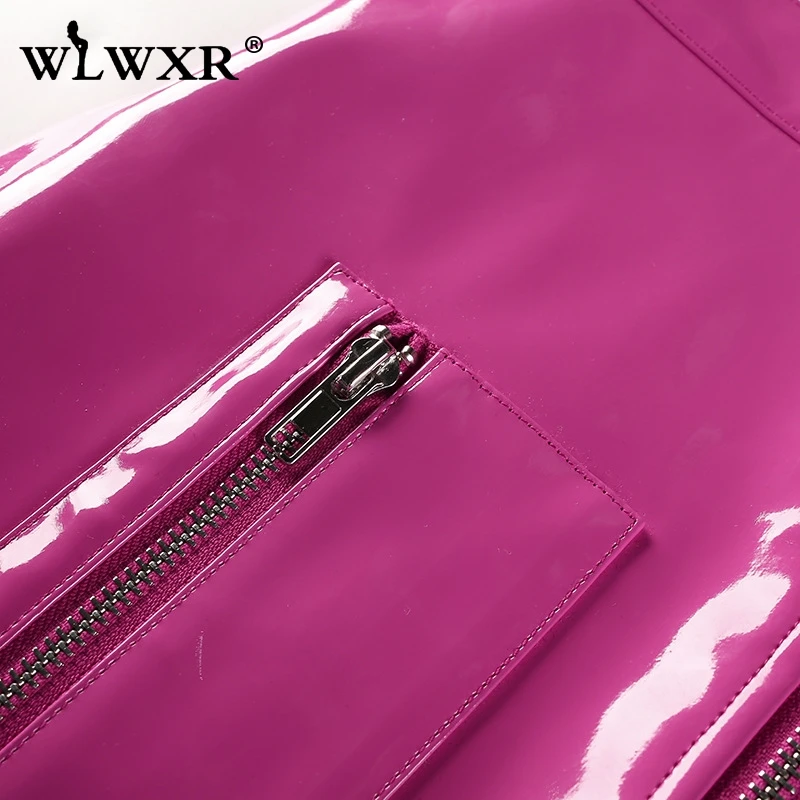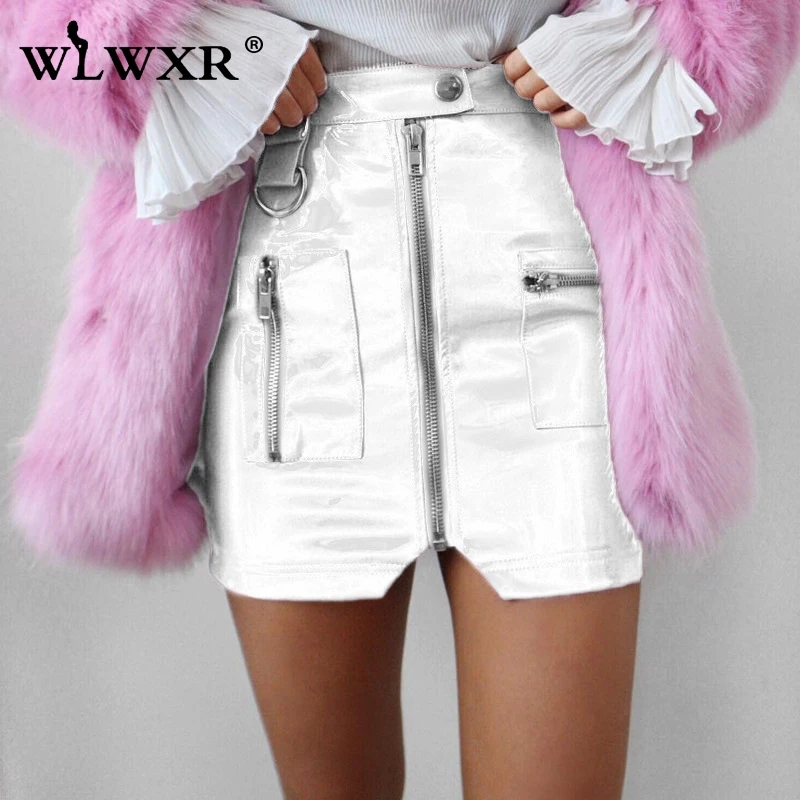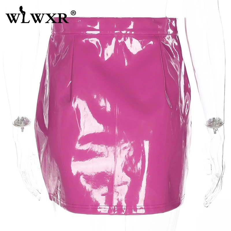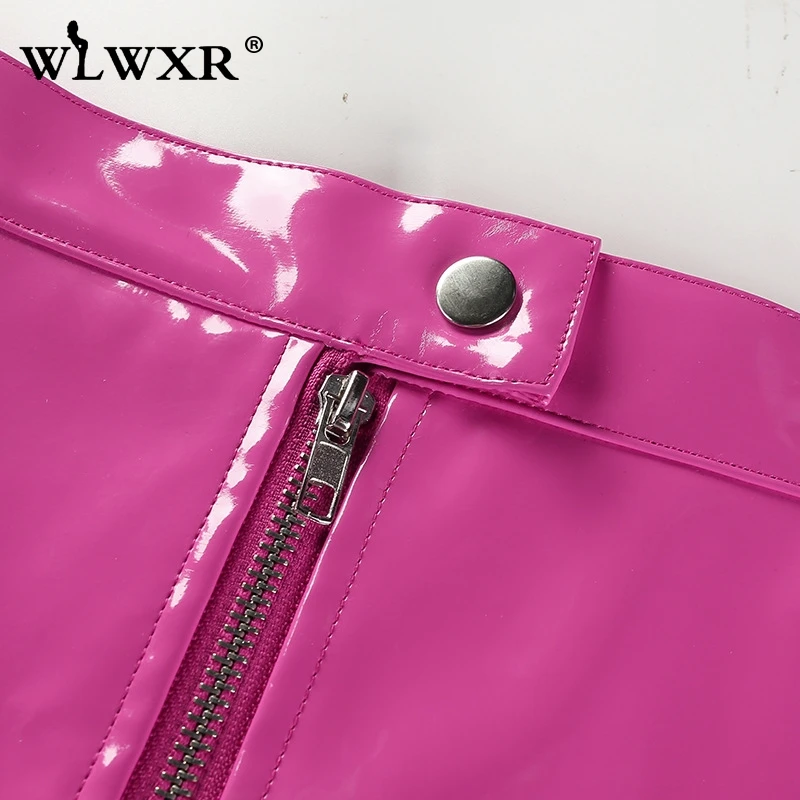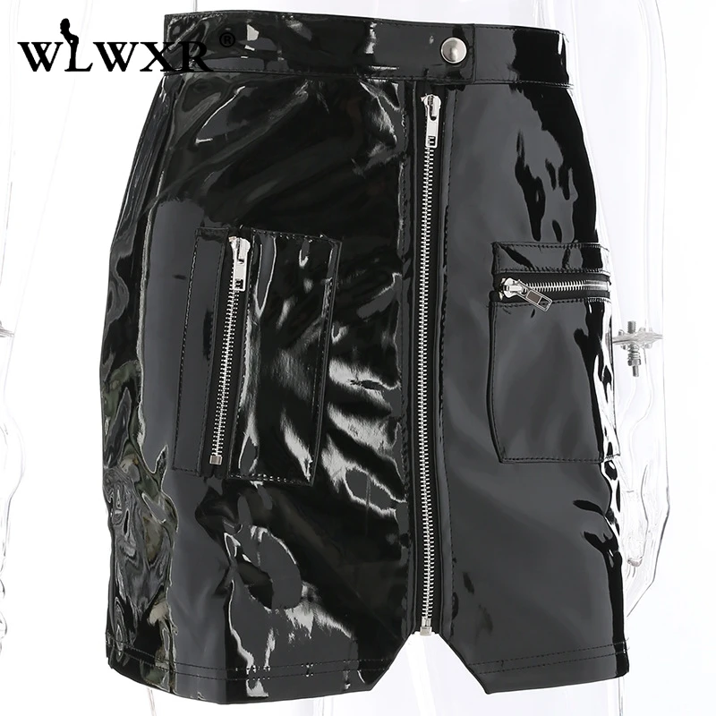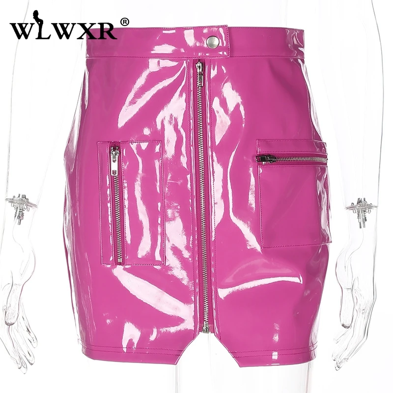 WLWXR искусственная кожа Pu юбки женские молнии карманы Розовый Черный Bodycon Высокая талия юбка женская сексуальная клубная короткая мини юбка