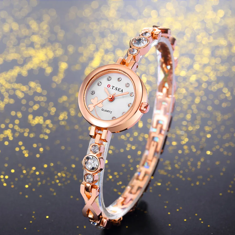 Модные женские туфли сплав аналоговые кварцевые c циферблатом горный хрусталь браслет наручные часы
