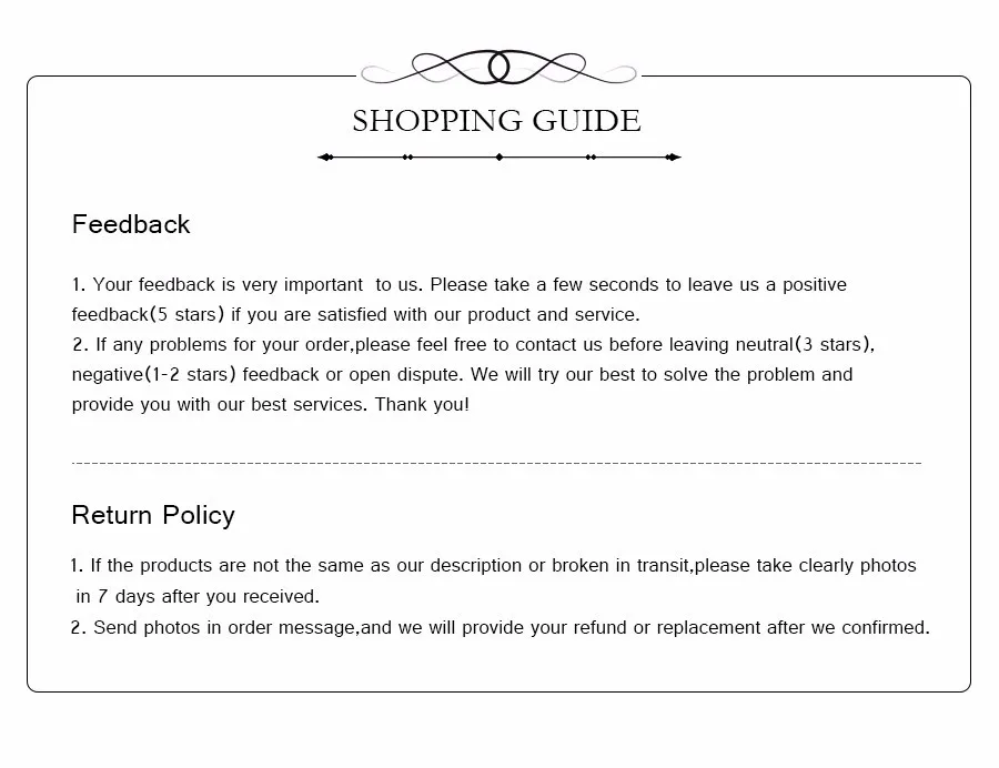 3. После получения товара, если у вас есть какие-либо вопросы, пожалуйста, свяжитесь с нами перед тем, как оставить негативный отзыв. Мы поможем вам решить эту проблему, спасибо!