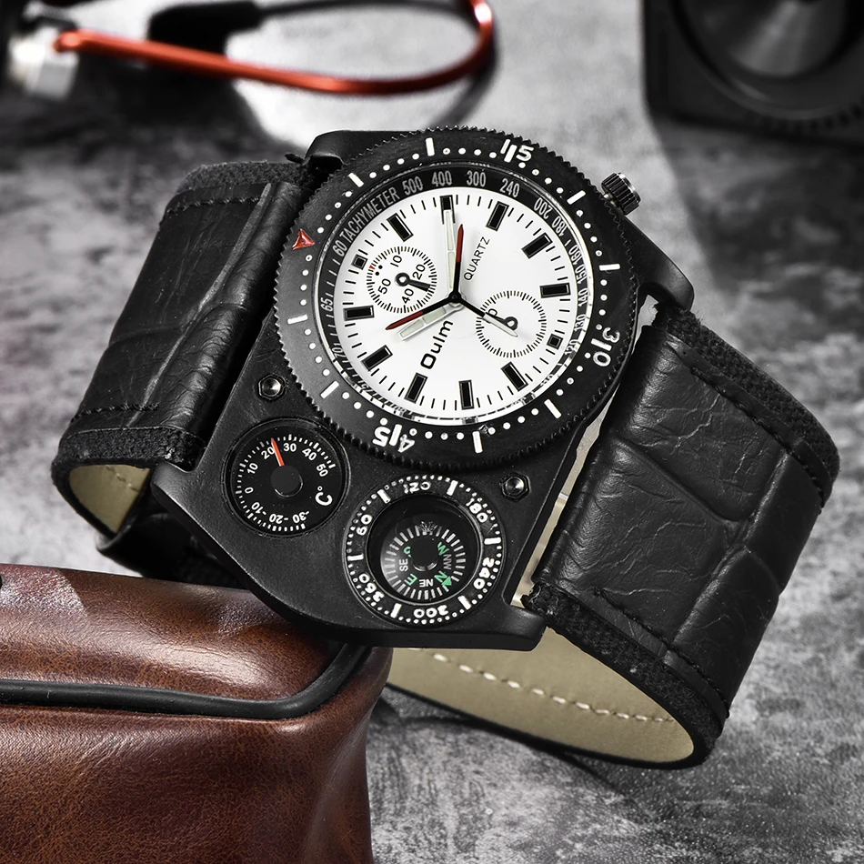 Oulm HP4094 Большие размеры спортивные мужские часы компас и измерение температуры Мужские t для украшения кварцевые часы мужские повседневные наручные часы