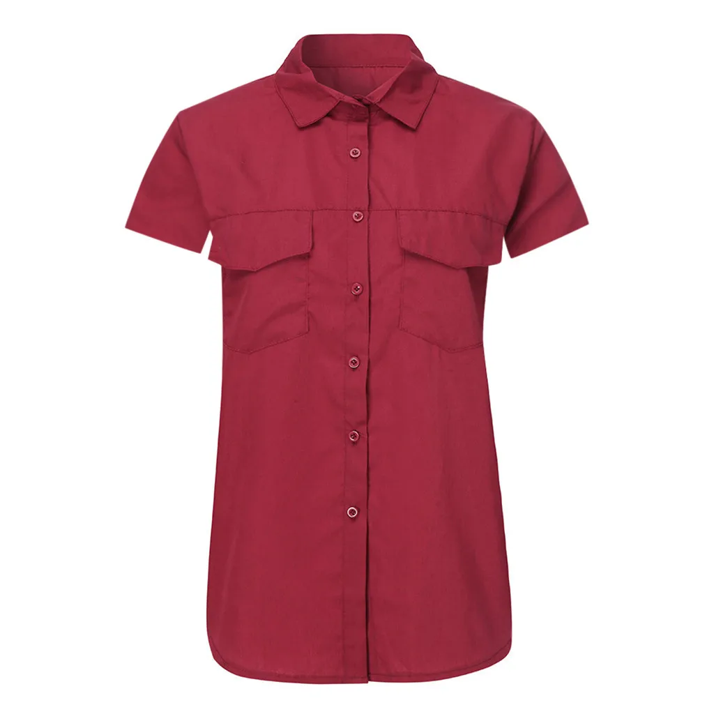 Женская Повседневная Однотонная рубашка с коротким рукавом и отложным воротником и карманами на пуговицах Особенности: 1.Благодаря однотонному дизайну вы будете выглядеть так красиво, повседневно, модно и по-разному. 2. Идеально подходит для активного отдыха, занятий спортом, повседневной носкиR. Удобные и лестные на всех типах тела. 3.Он изготовлен из высококачественных материалов, прочный для вашего daiКрасивая одежда.Отлично подходит для шорт, джинсов или леггинсов. Информация о продукте: Сезон: лето Пол: женщин Повод: повседневный, повседневный Материал: полиэстер ПАТип терна: твердый Стиль рукава: прочный рукав Толщина: Стандартная Длина рукава: короткий рукав Украшение: Карманы Посылка включает в себя: 1 Женская блузка