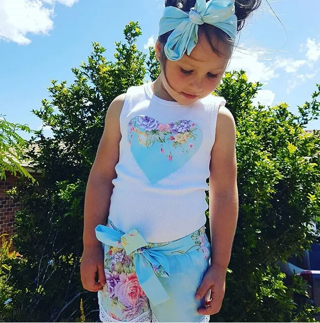 Красивые топы для маленьких девочек + шорты + повязка на голову, комплект из 3 предметов!