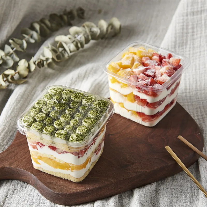 Квадратная прозрачная одноразовая Желейная пластиковая чашка с крышкой для мороженого