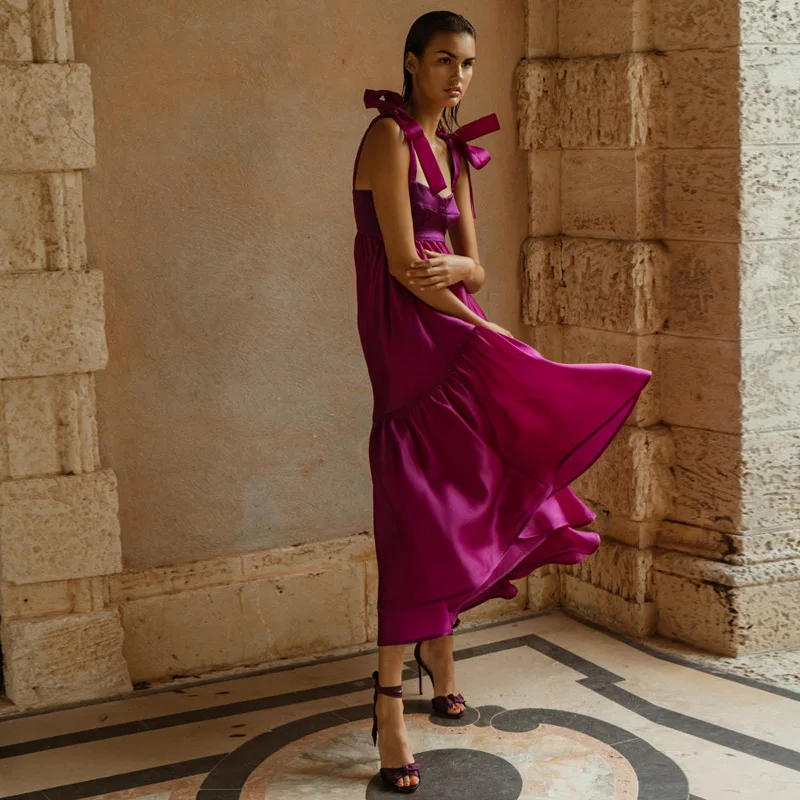 Европейские и американские женские взрывы 2019 кросс-граница новые сексуальные слинг ремни нерегулярные сплошной цвет богемное платье
