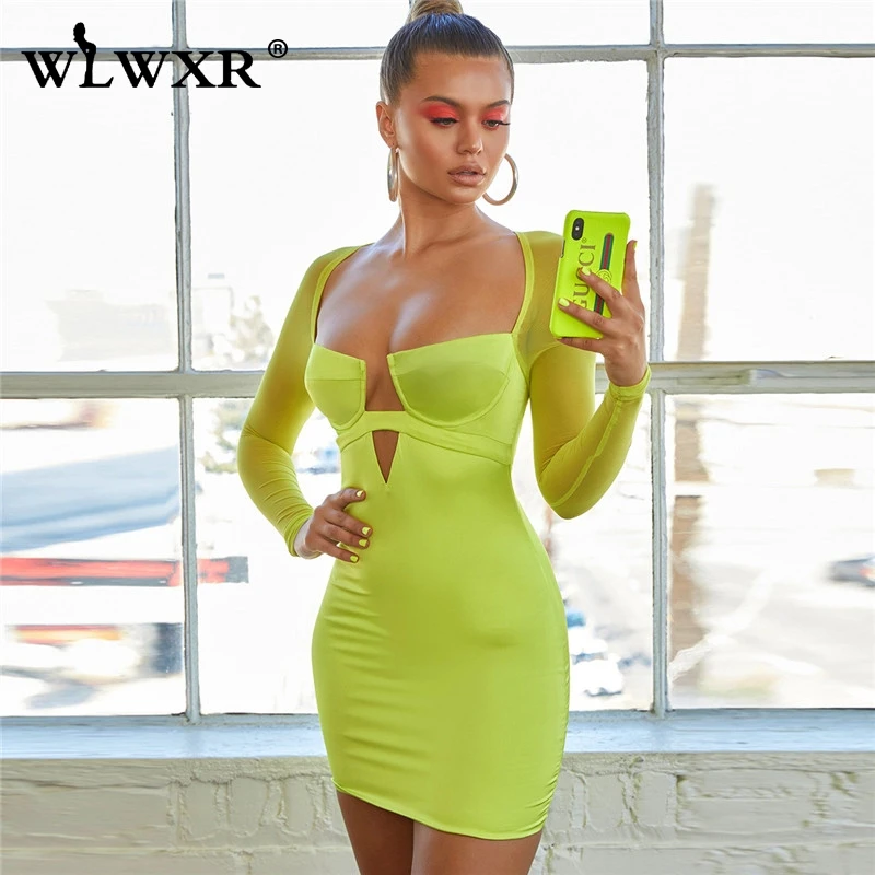 Женское атласное платье с длинным рукавом WLWXR, лоскутное короткое облегающее платье с открытой спиной, Клубное вечернее платье, лето 2019