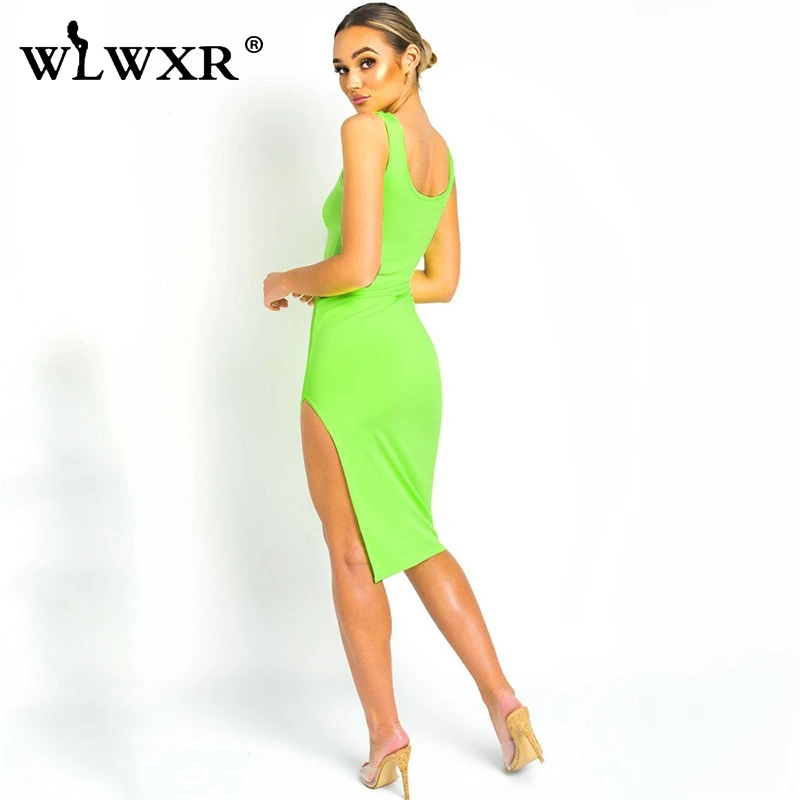 WLWXR сексуальное Клубное облегающее платье с разрезом, женский сарафан, зеленое Мини Летнее пляжное платье с открытой спиной, повседневные женские Короткие вечерние платья с запахом