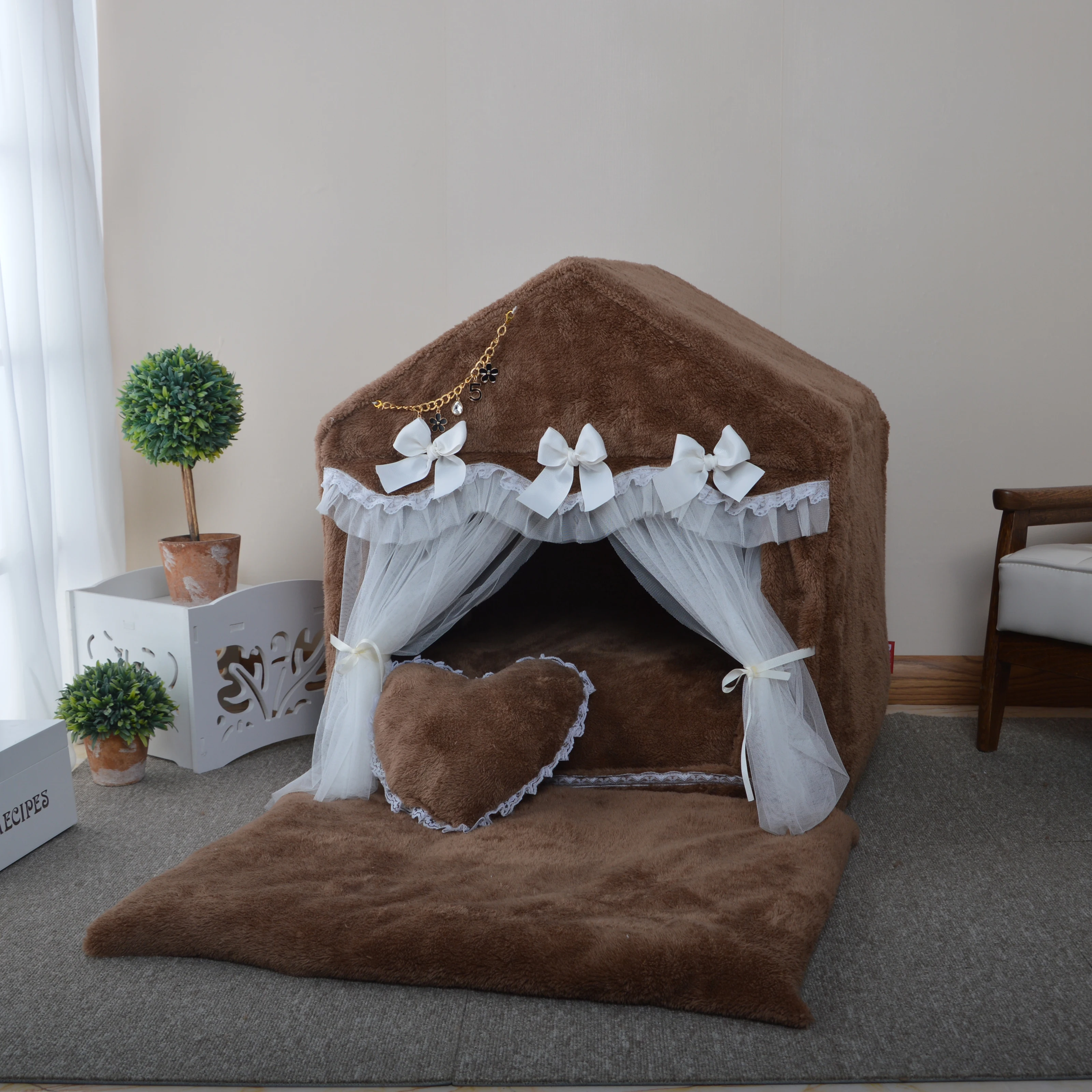 Красивый и практичный, теплый и удобный коралловый вельветовый домик для домашних животных