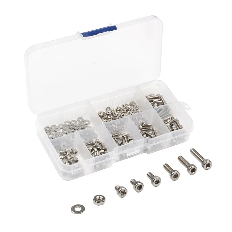 Тип Размер Количество Винты DIN912 M2.5 * 4 20 DIN912Винты M2.5 * 5 20 DIN912Винты M2.5 * 6 20 DIN912Винты M2.5 * 8 20 DIN912Винты M2.5 * 10 20 DIN912Винты M2.5 * 12 20 DIN934 шестигранные гайки M2.5 65 DIN125 Плоские шайбы M2.5 65