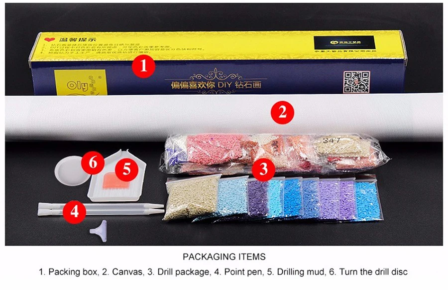 1,The painting canvas, the rhinestones and all tools will be packed into a box.