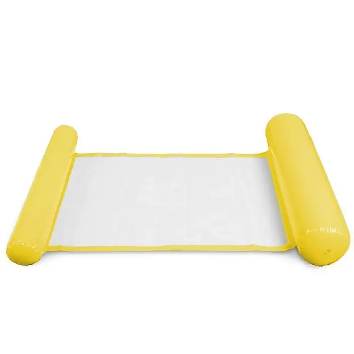 Material: PVC 6 Colors: Yellow, Rose Red, Orange, Blue,Red,Dark Blue Size: 130x73cm/51.2x28.7inch Quantity: 1Pc Features: Foldable design,convenient to carry. Made of eco-friendly PVC material, no smell and non-toxic. Float on water, luxuriate in sunshine. Provides full support to your head and legs. Allows your body to float comfortably in the water to stay cool in the summer sun. Package Content: 1 x Floating Swimming Chair Note: Due to the difference between different monitors, the picture may not reflect the actual color of the item.