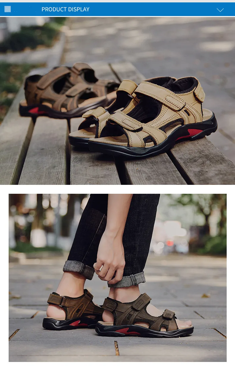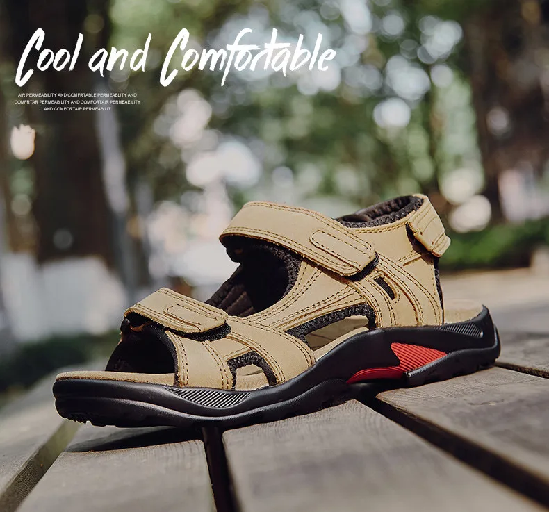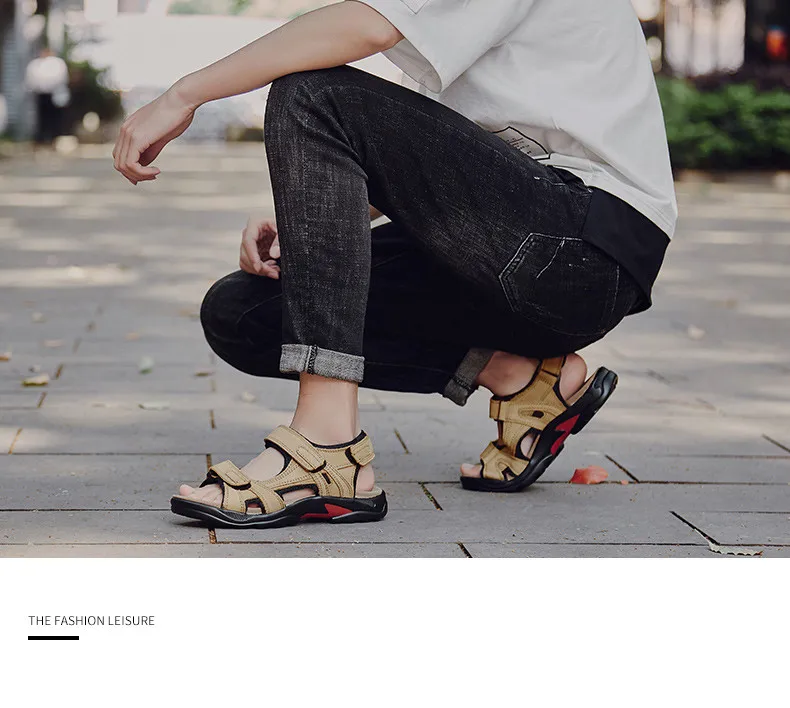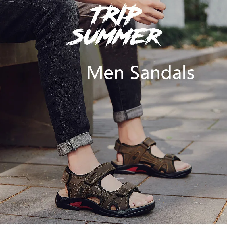1. Стиль: модные повседневные сандалии 2. Цвета: хаки/коричневый 3. Размер EUR38-EUR48 4. Материал верха: натуральная кожа 5. Подошва: искусственная кожа