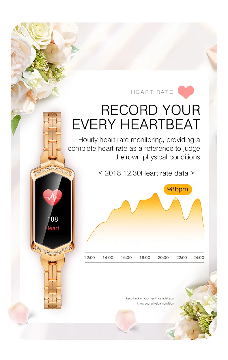 Носимые устройства отслеживают деятельность человека с помощью электронных датчиков, и они находятся на уровне электуоники потребителя. Это нормально для определенного отклонения. Пользователь должен рассматривать данные объективно. Пожалуйста, не сравнивайте с больничным оборудованием для чтения, это не медицинское устройство! Перед использованием отсканируйте qr-код в руководстве, чтобы загрузить приложение и подключить его к часам с помощью приложения.