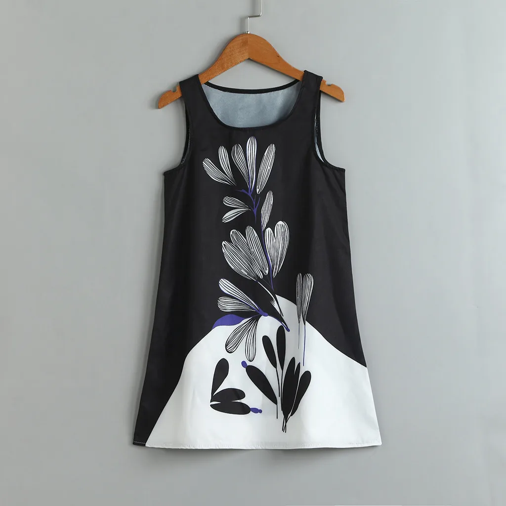Летнее для девочек-подростков; платья без рукавов с 3D принтом; повседневная одежда