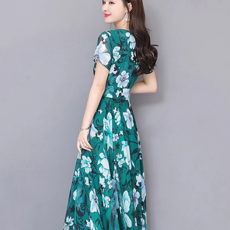 * Описание изделия: круглый вырез, короткий рукав, приталенная талия, цветочный принт