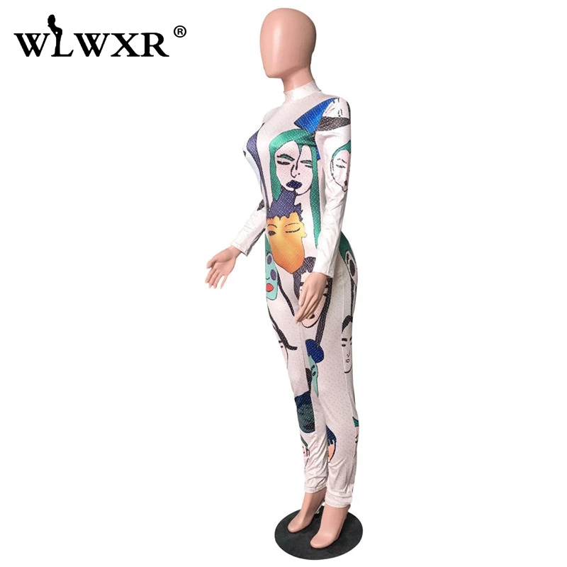 WLWXR уличная одежда с блестящим принтом, сексуальный Летний комбинезон, женский комбинезон с длинным рукавом, обтягивающий Облегающий комбинезон, женский комбинезон