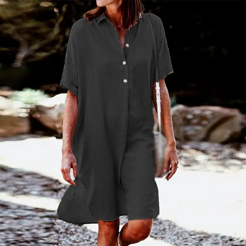 * Описание товара: женское платье-рубашка,Свободные,Короткий рукав,Отворот,По колено,Лето,Повседневное