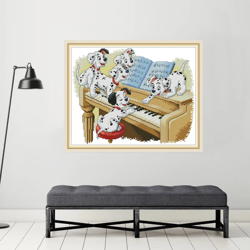 Милый Набор для вышивки крестиком далматина, набор для рукоделия с китайской вышивкой, принт, холст, собака и пианино, вышивка крестиком, сделай сам, бисер