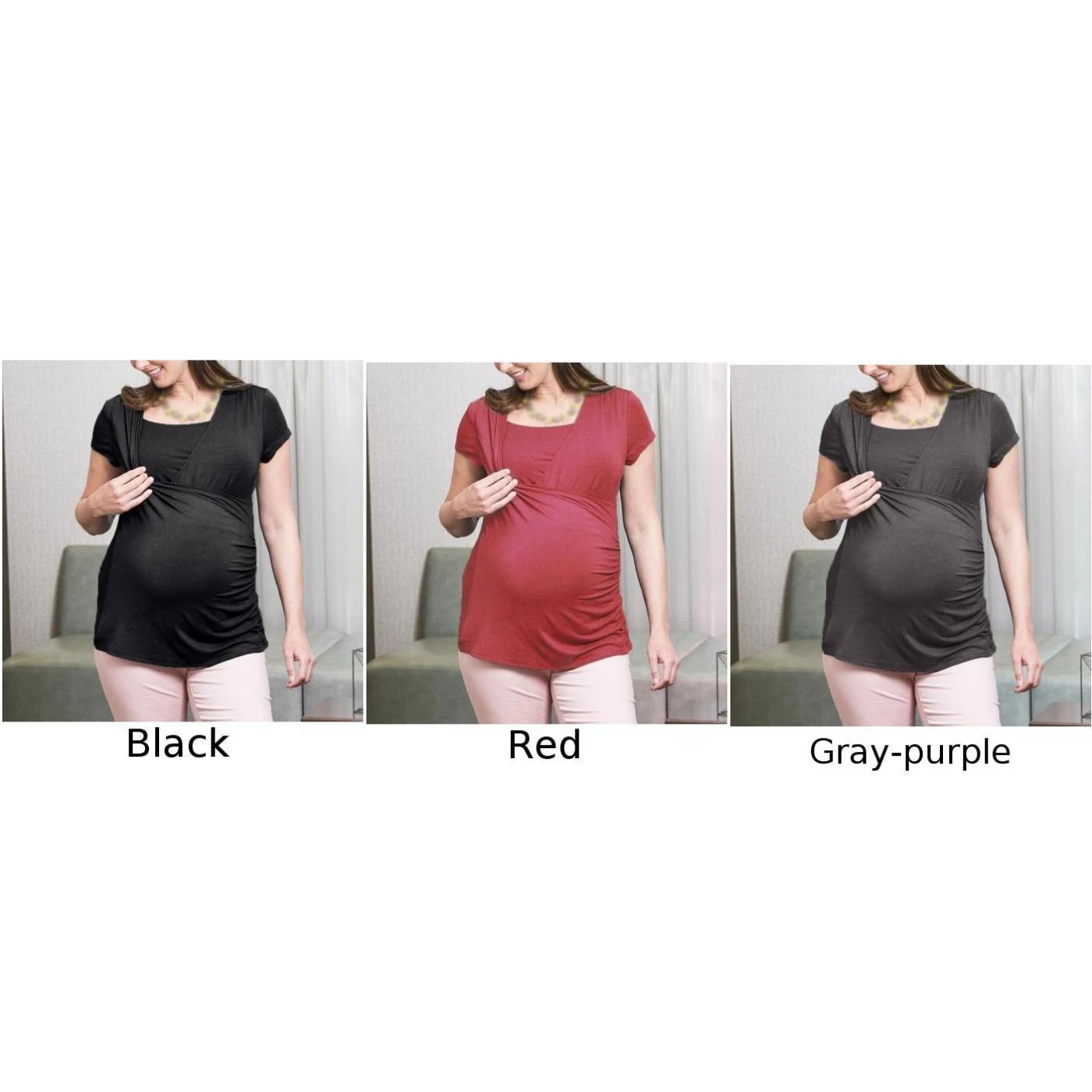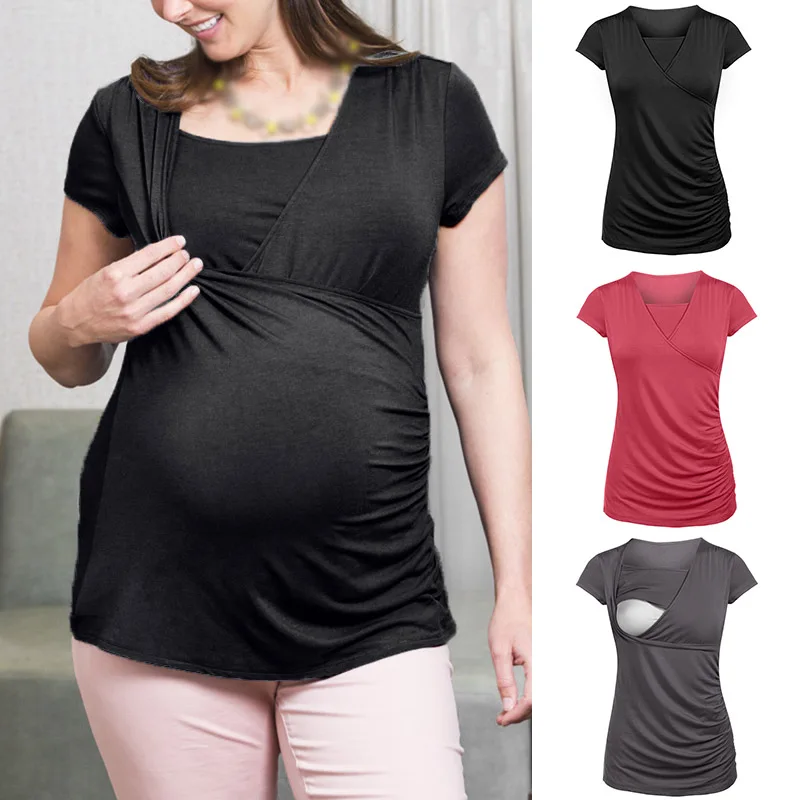 * Описание товара: для беременных и кормящих женщинБлузка, тонкая, однотонная, с короткими рукавами,Скрытый с резным узором