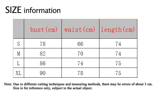 1. Пожалуйста, внимательно проверьте таблицу размеров перед покупкой товара, если вы не знаете, как выбрать размер, пожалуйста, свяжитесь с нашей службой поддержки клиентов.
