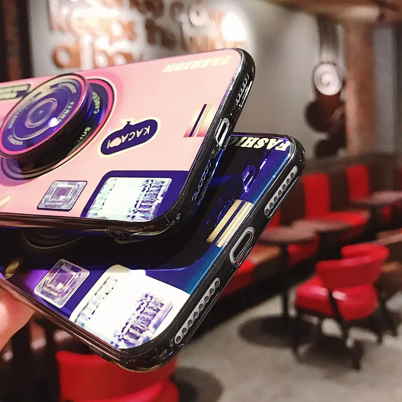 Синий свет чехол для iPhone X XS Max силиконовый чехол милый камера стенд держатель чехол для iPhone 6 6 S 7 8 плюс