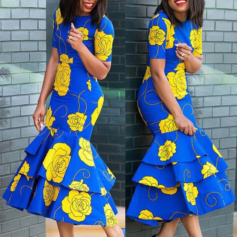 * Описание товара: принт; облегающий; многослойный гофрированный; рыбий хвост; круглый вырез
