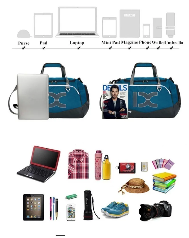 Материал: полиэфирная ткань + сетчатый карман Размеры: Большой размер: от 45x36x27cmApproxi. Цвет: черный, синий, зеленый, красный, смешанный, 7 цветов Посылка включает в себя: спортивная сумка для тренажерного зала * 1 шт. Применение:Многофункциональная сумка с ручкой, сумка через плечо, сумки через плечо, спортивная сумка, Дорожные сумки