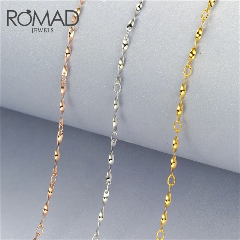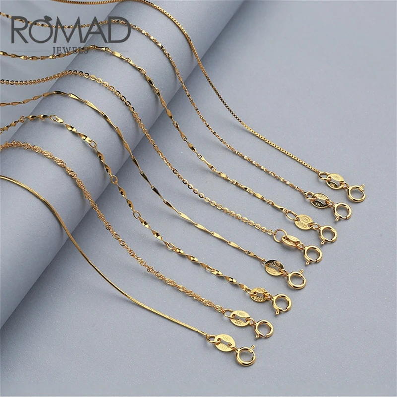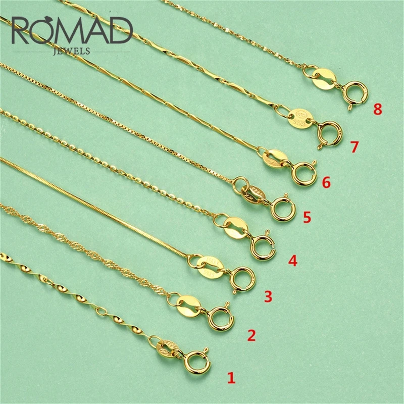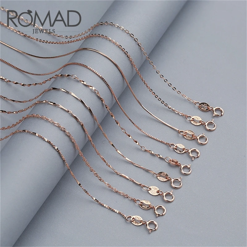 Женская цепочка ROMAD, ожерелье из стерлингового серебра 925 пробы, простое колье, золото/розовое золото, 40/45 см, воротник, R5
