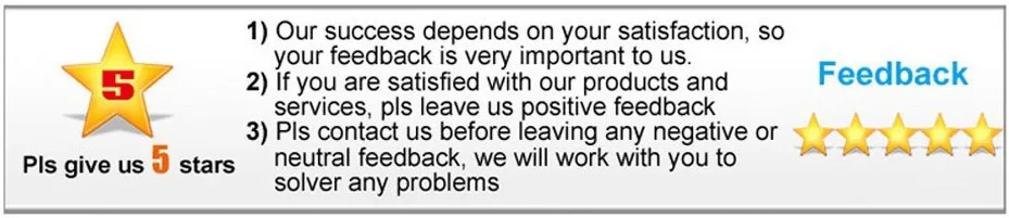 Your satisfaction and positive feedback is very important to us. Please leave positive feedback and 5 stars if you are satisfied with our items and services.