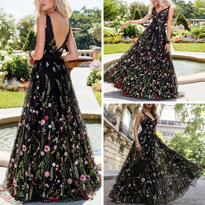 * Описание товара: Лето; глубокий v-образный вырез; Сексуальный; открытая спина; без рукавов; вышивка; длинное платье