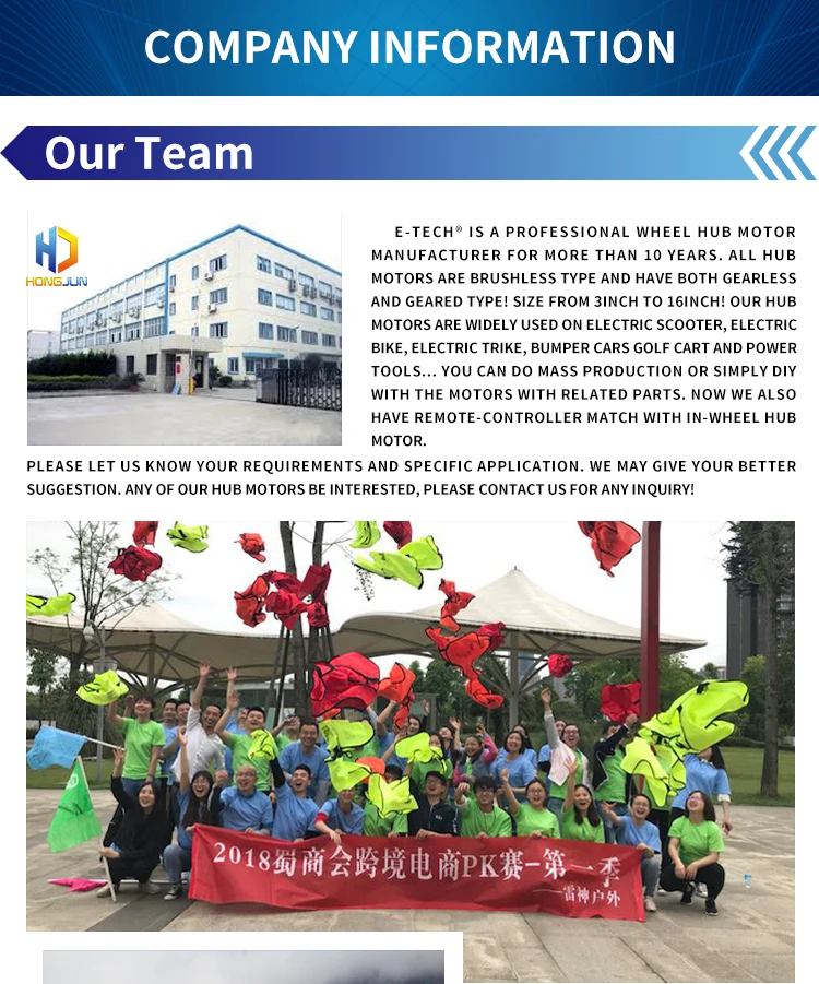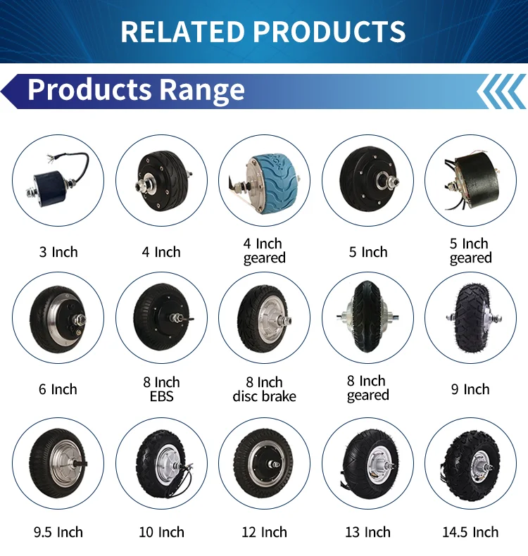 Voltage: DC 24V/36V/48V Power: MAX:400W Speed: MAX: 40km/h Diameter with tire: 200mm Brake: EBS brake/ disc brake/ drum brake Tire: vacuum tyre/ hollow tyre Weight: 3.2KG with tire Size: 8 inch Sensor: With hall sensor