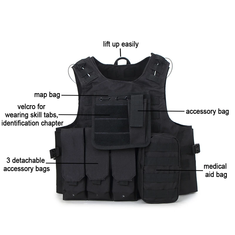 -Плечевая и поясная боковая части оснащены волшебной лентой и пряжкой, что позволяет быстро и удобно носить и снимать этот тактический жилет.