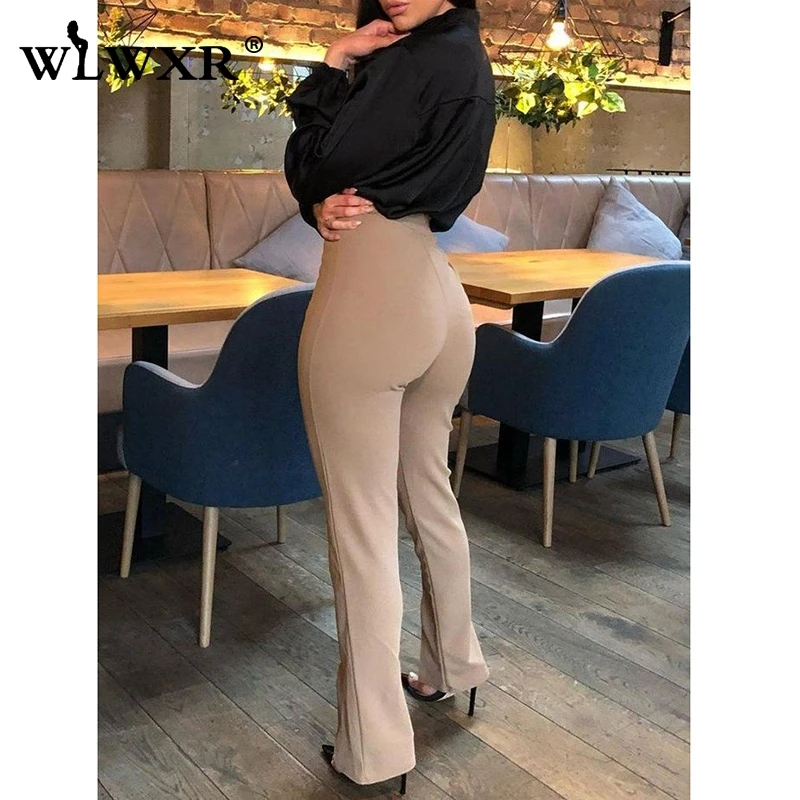 WLWXR повседневные широкие летние облегающие брюки с разрезом, женские офисные брюки с высокой талией, женские брюки, женские расклешенные обтягивающие сексуальные брюки