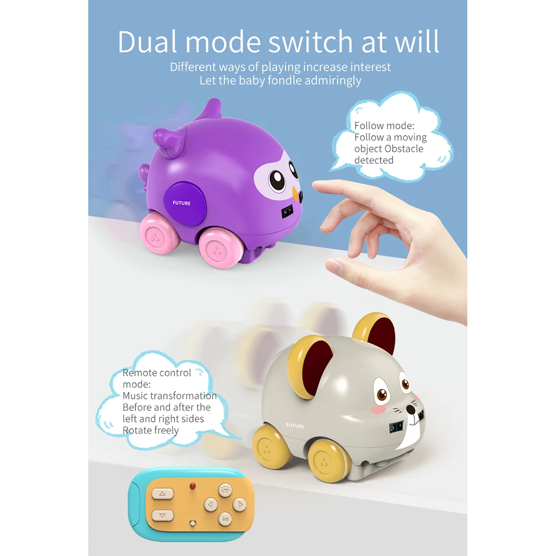 Особенности: Функции: вперед, назад, поворот налево, поворот направо, дистанционное управление, поворот на 360 градусов, наблюдение, режим избегания препятствий, светильник и музыка. 【Sense Next car】милый автомобиль с изображением животных будет следовать за вашей рукой, чтобы двигаться, вы можете легко наслаждаться им без каких-либо внешних силы толчка, где бы вы ни хотели, он автоматически уклонится от препятствий. 【 Пульт дистанционного управления 】оснащен пультом дистанционного управления, режим наблюдения и режим дистанционного управления можно переключать по желанию, вы можете переключать музыку по желанию, долго нажимать левую кнопку или правую кнопку, симпатичная сенсорная машина для животных может вращаться на 360 градусов. 【Светодиодный светильник s и music】мягкий светильник не раздражает глаза вашего ребенка. Вы можете воспроизводить музыку в соответствии с предпочтениями вашего ребенка. Вы также можете осуществлять восприятие движения вашего ребенка, наслаждаясь музыкой. 【Безопасный и долговечный 】изготовлен из высококачественного АБС-материала для длительного использования. Поверхность гладкая и не имеет краев и углов, это не повредит молодой коже ребенка. [Идеальный подарок] милый внешний вид может привлечь внимание ребенка, и ему понравится. Идеальный подарок на день рождения, рождественский подарок, автомобильные принадлежности для тематической вечеринки и т. д. Рекомендуется для детей в возрасте 3 +. Параметры: Название: мультяшный автомобиль с животными Тип: фиолетовая Сова/хаки мышь на выбор Материал: АБС + электронные компоненты Фиолетовый сова Большие размеры: 11*7*7,5; Хаки Размер компьютерной мыши: 9*8,5*7,5 см Автомобильный аккумулятор: 3,7 в 250 мА · ч (встроенный) Время зарядки: около 60 минут Время работы: около 23 минут Расстояние управления: около 10 м Батарея контроллера: 2*1,5 V элемент питания AAА (в комплект не входит) Возраст: ≥ 3 Посылка Размеры: 20*15*8,5 см Вес посылка: 300 г Посылка список: 1 * автомобиля 1 * пульта дистанционного управления 1 * Руководство пользователя