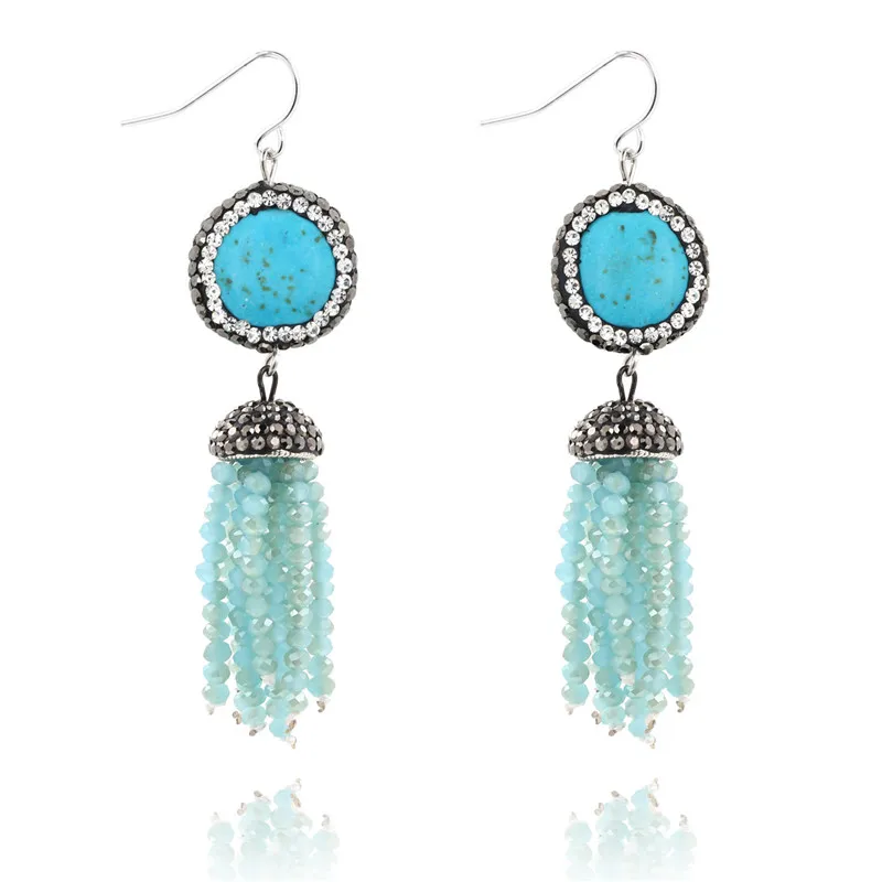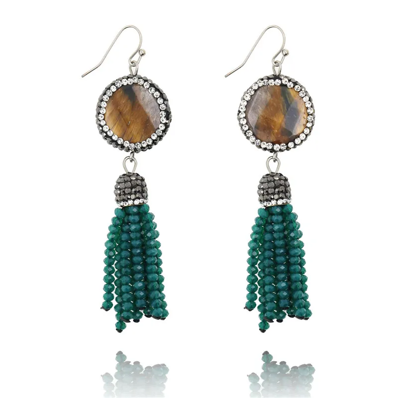 Boho ручной работы бисером кисточкой Драгоценный Камень Кристалл Висячие серьги для женщин pendientes mujer moda 2019 ювелирное изделие