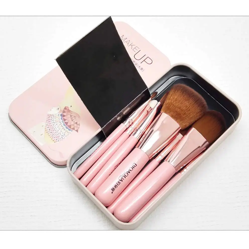 Изысканная железная коробка, 7 шт., набор кистей для макияжа из тонкого шерстяного волокна, профессиональные косметические инструменты для макияжа