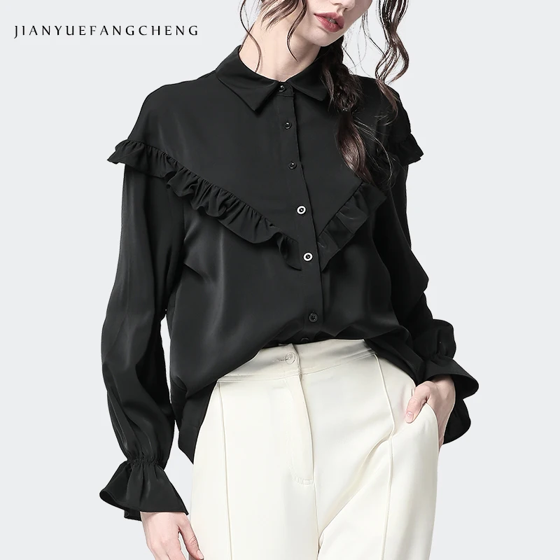 Модная перевернутая треугольная блузка с длинным рукавом и оборками Женская весенне-летняя уличная одежда, рубашка, топы