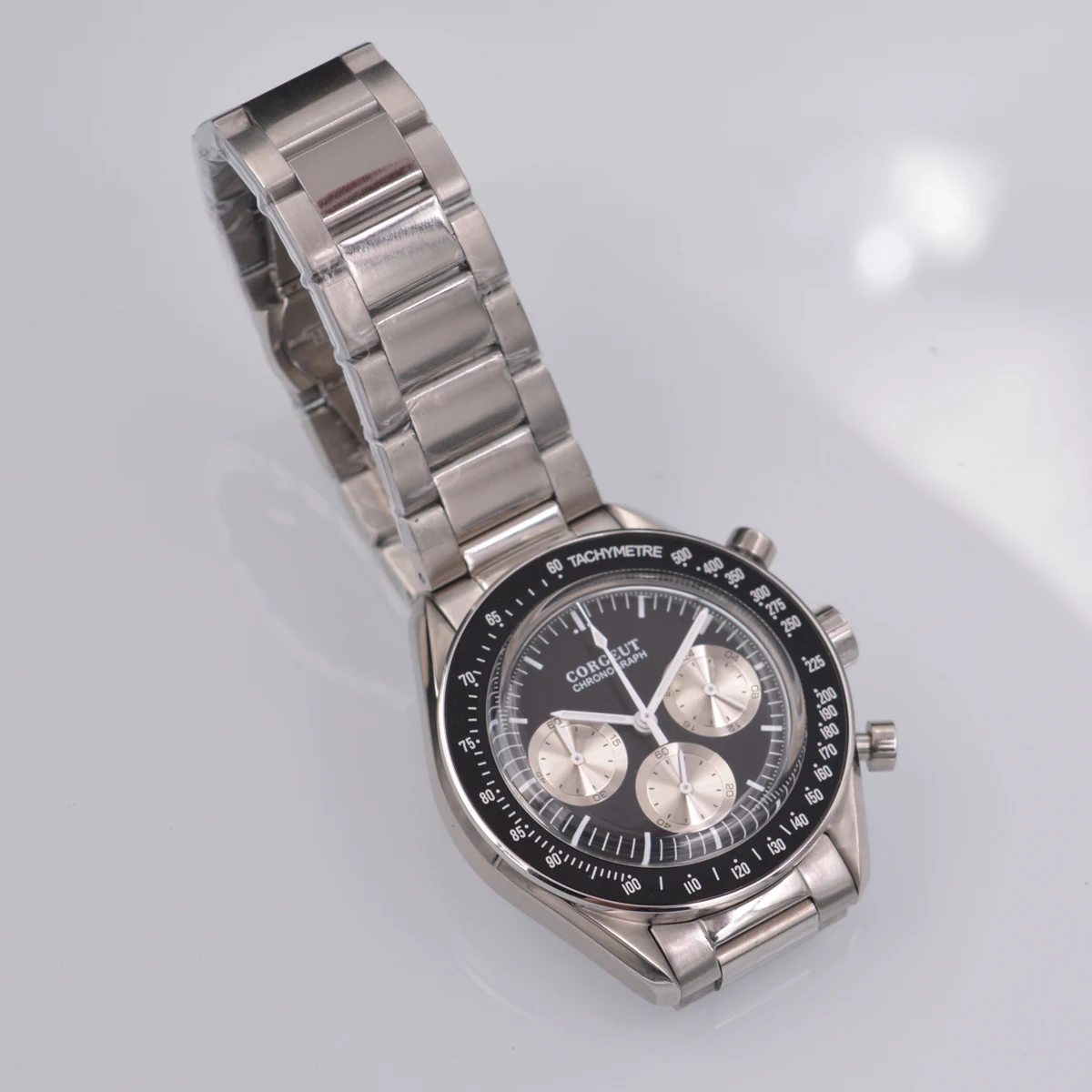 Механизм: Японский кварцевый часовой полнофункциональный хронограф Циферблат: черный циферблат Чехол Диаметр: 40 мм Чехол Толщина: 13 мм Материал корпуса: твердый корпус из нержавеющей стали 316L с черным ободком Функция: Кнопка толкателя при 2:00 запуске/остановке хронографа Кнопка Pusher на 4:00 сброс хронографа Время работы: 6:00 часов Минутный хронограф в 9:00 часов 24 часа в 3:00 часов Широкий ремешок: ремешок 20 мм Стекло: специальное устойчивое к царапинам минеральное стекло