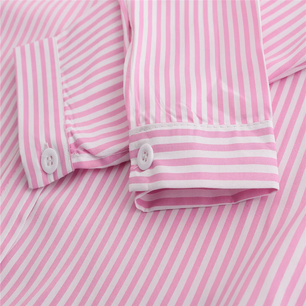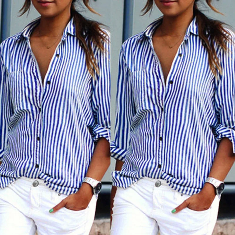 * Описание товара: летние женские повседневные свободные длинные рукава Женская блузка в полоску рубашка для отдыха Топы