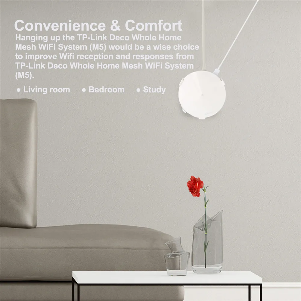 No need to put it on the table, you can hang it on the wall, mounting high on the wall, keeps your TP-link M5 out of the way of Overturned cup, pets and children. Features: 1.Compact and lightweight wall mount holder,looks clean and classic with your TP-Link Deco M5 Whole Home Mesh WiFi Router. 2.Save your limited space and keep your device away from any water or others that might accidentally spill or splash. 3.Acquire better wifi signal and when mounting up, prevent your children or pets to play with it without dropping. 4.Great decoration for Living room, bedroom, study, shop, and all other rooms. NOTES: TP-Link Deco M5 IS NOT INCLUDED.