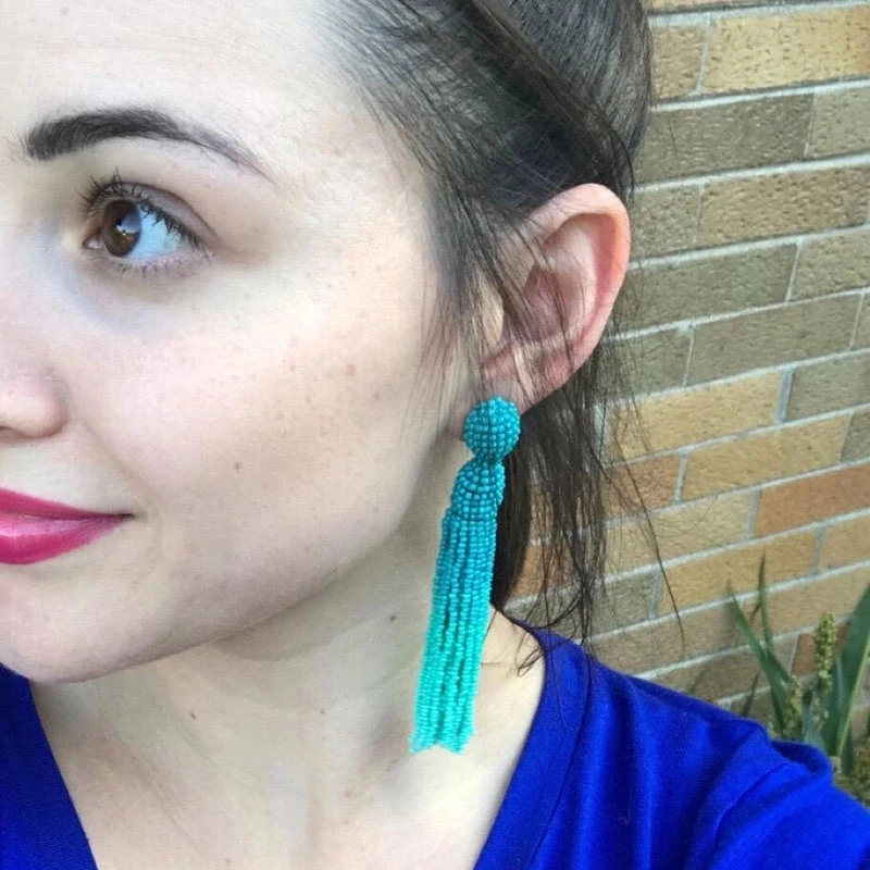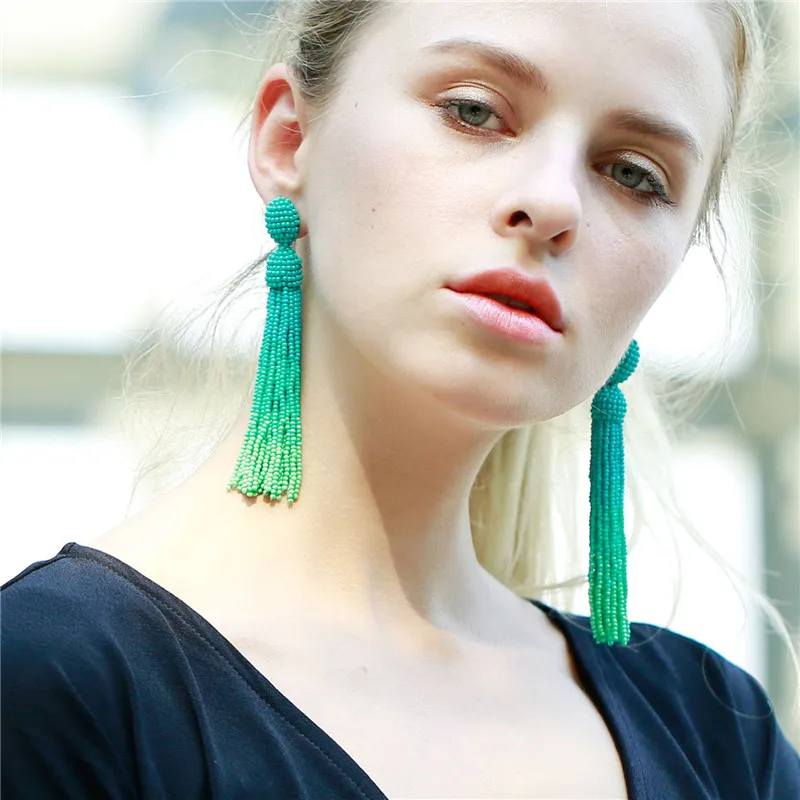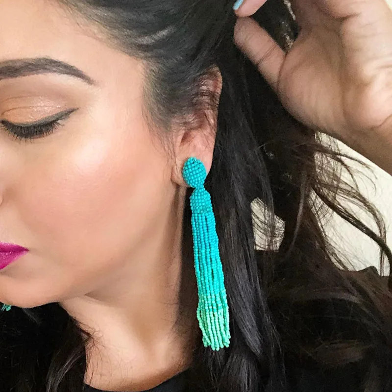 Серьги 2019 бирюза ручной работы бисерные Висячие болтающиеся длинные кисточки
