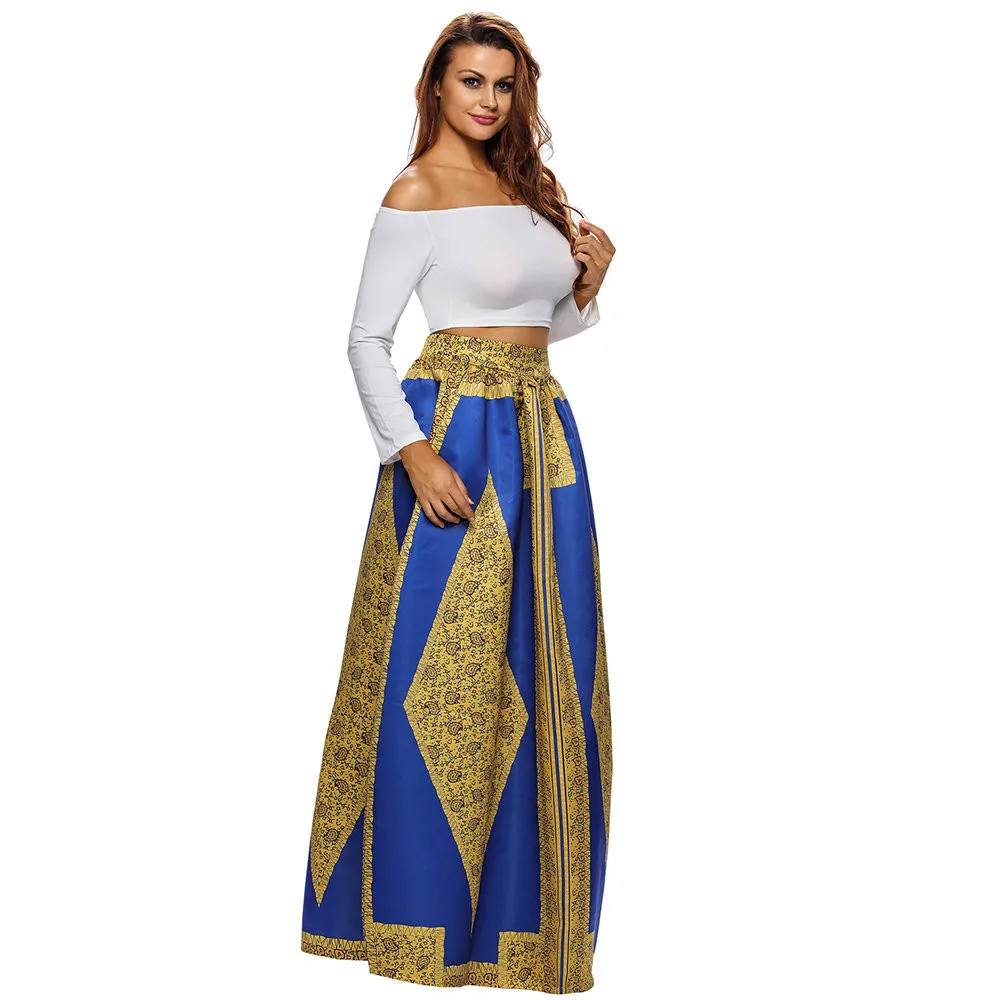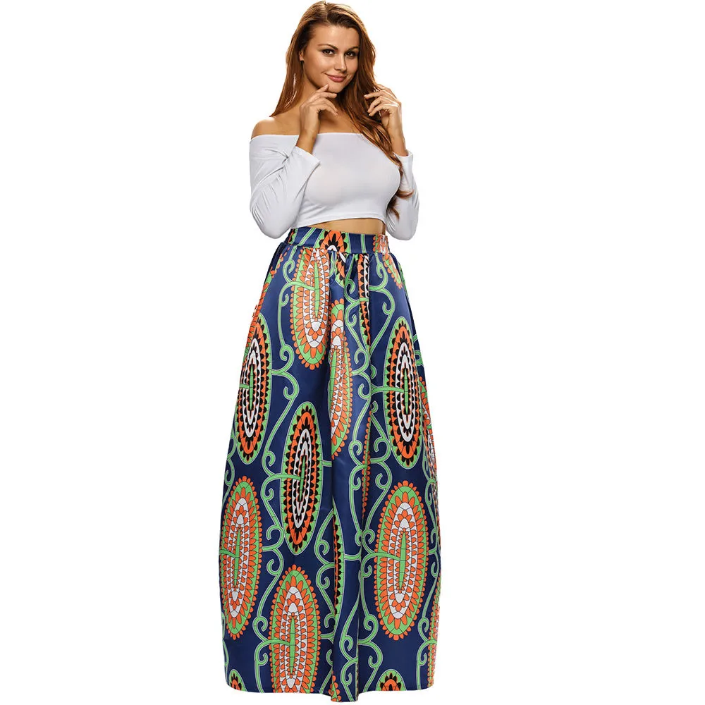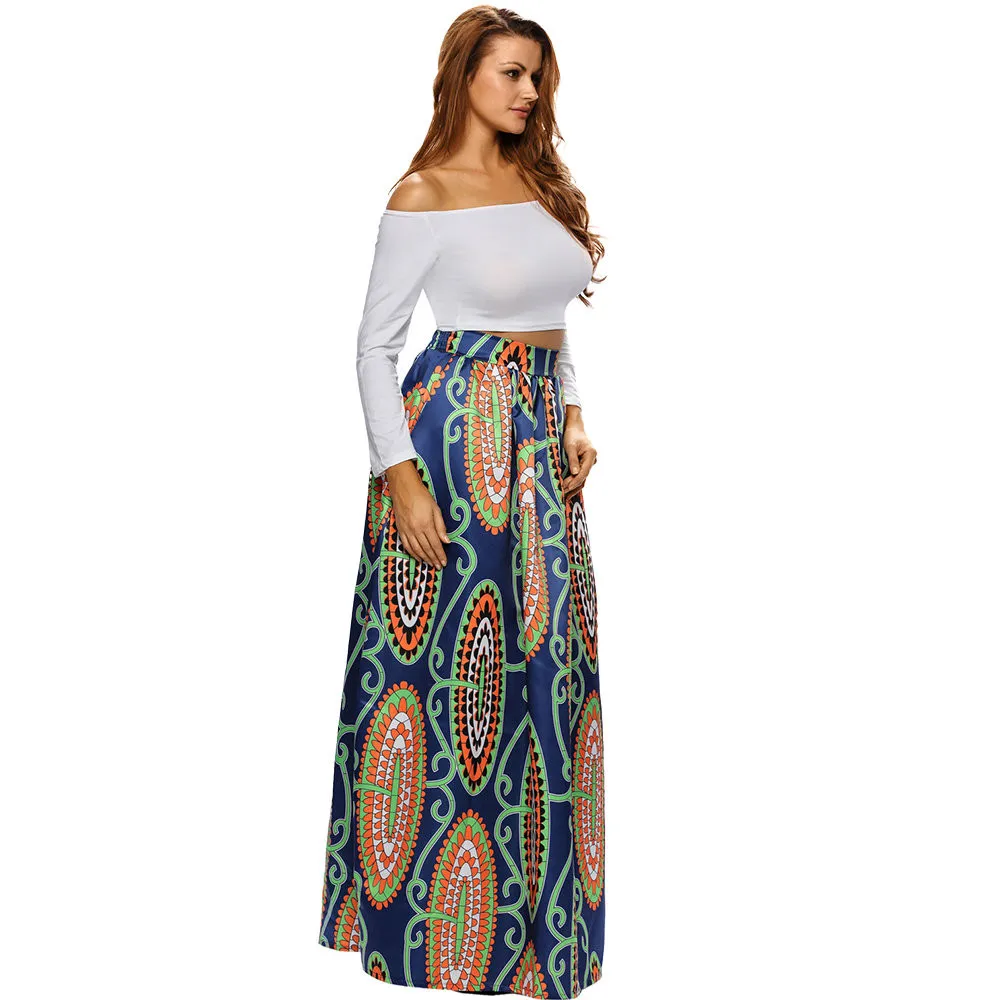2019 женская летняя Высокая талия A Line Макси Длинная юбка-зонтик элегантный Дворцовый стиль печатная плиссированная Высокая талия Макси юбка 50