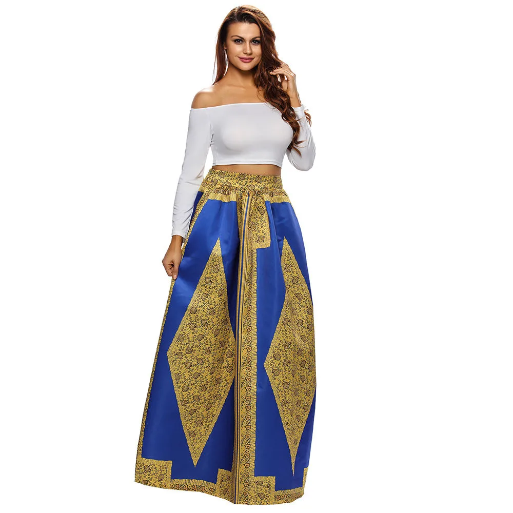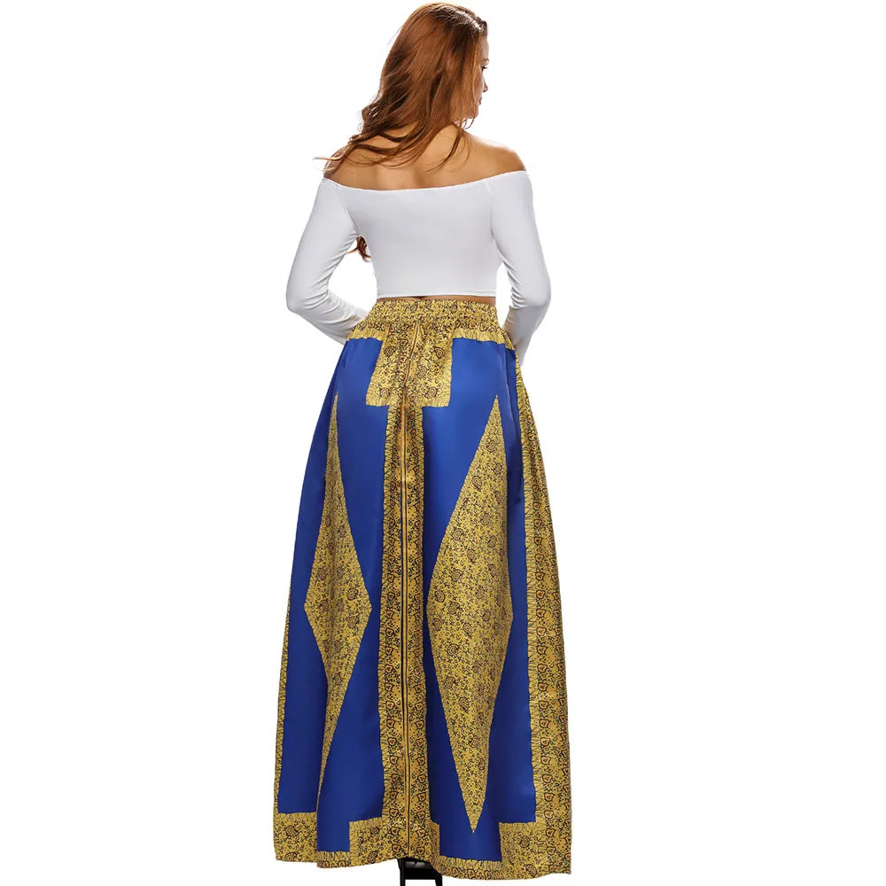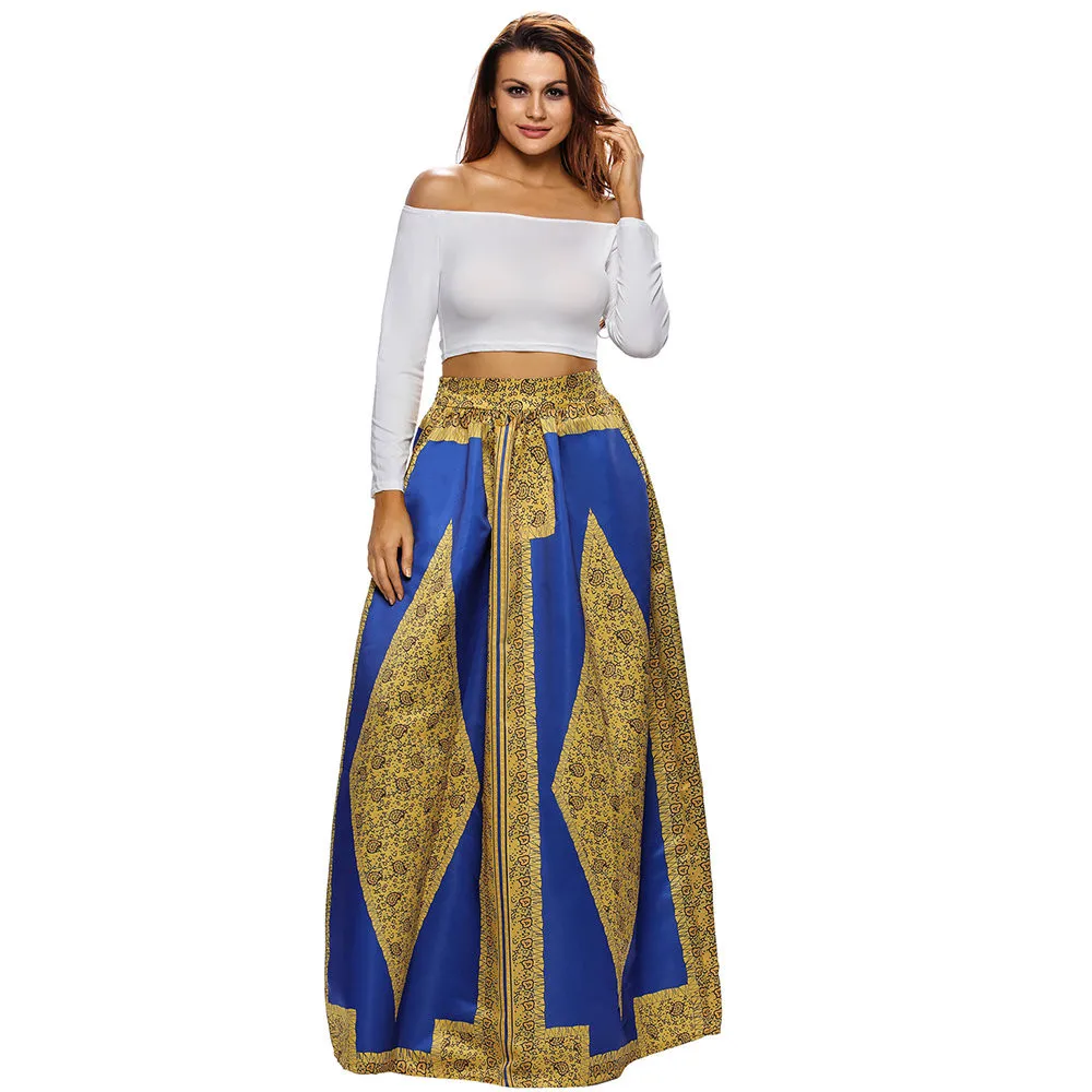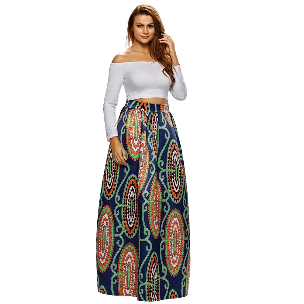 2019 женская летняя Высокая талия A Line Макси Длинная юбка-зонтик элегантный Дворцовый стиль печатная плиссированная Высокая талия Макси юбка 50